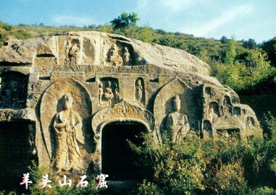 羊頭山為炎帝神農(nóng)傳說中心之一,又是高平市的旅游區(qū)之一。山頂舊有神農(nóng)城,山下有神農(nóng)井和五谷畦。北魏時(shí)還在山頂留下了造型精美、內(nèi)容豐富的石窟與造像塔。山頂四面造像塔建于北魏初期,距今已1500余年則我國現(xiàn)存最古老的石塔之一。石塔四面造像,均刻一佛二菩薩,塔身之上為四坡水式塔頂,基座為罕見的羊頭狀。此外還有兩座唐塔和其它景致、文物。