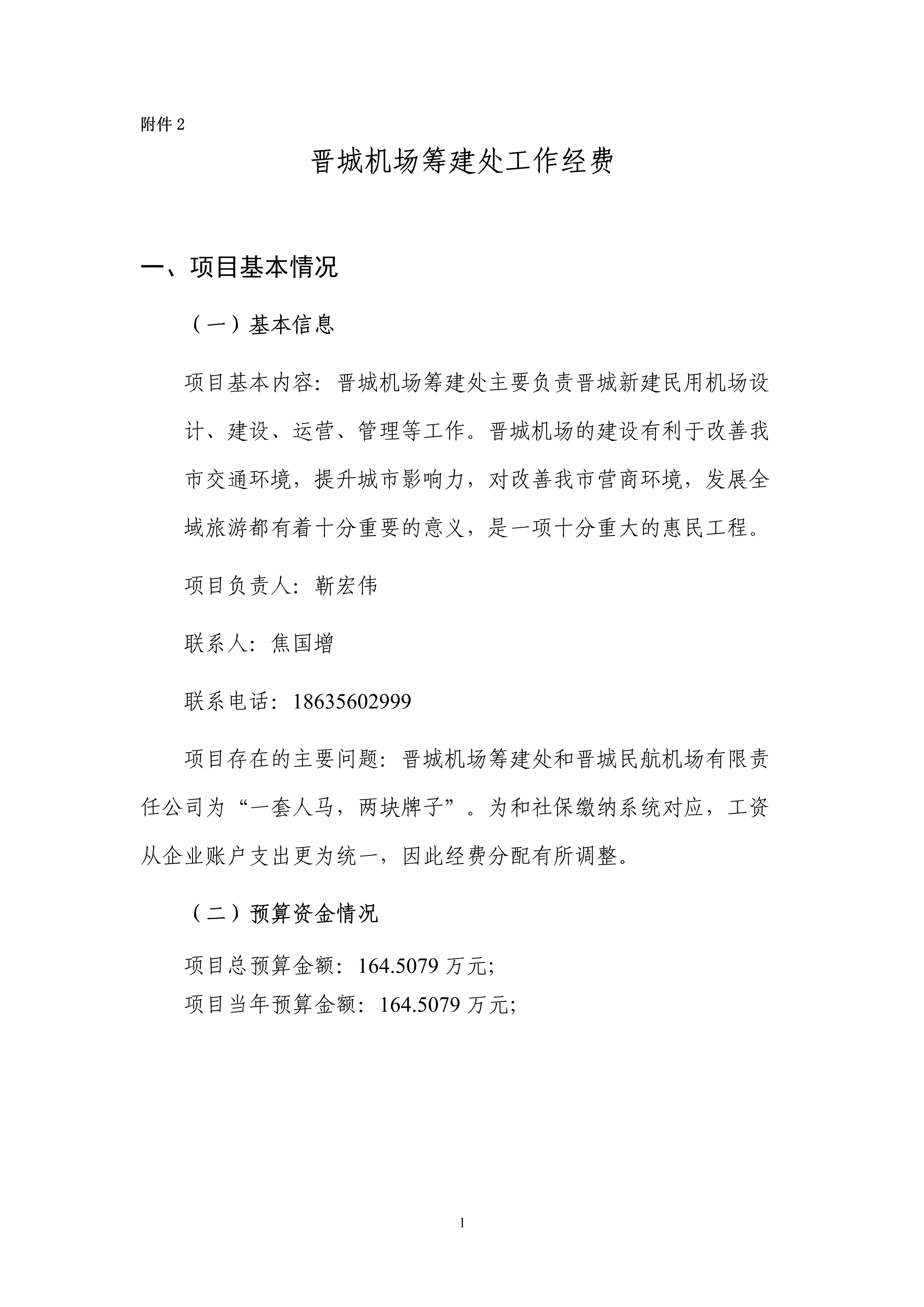 晉城機(jī)場(chǎng)籌建處2021年度決算公開