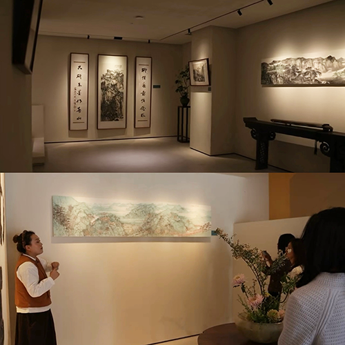 隨后參觀了水木茶美學(xué)空間的畫室,欣賞了本地書畫大師賈大一、李海忠等老師的作品,既有筆力遒勁的書法佳作,也有意境悠遠(yuǎn)的山水畫作。大家駐足欣賞、細(xì)細(xì)品讀,在一撇一捺、一山一水間感受筆墨韻律,沉浸于中華優(yōu)秀傳統(tǒng)文化的熏陶之中。此次作品展不僅是一場視覺盛宴,更是一次美育熏陶,讓人在藝術(shù)欣賞中提升審美素養(yǎng)、感悟文化力量。